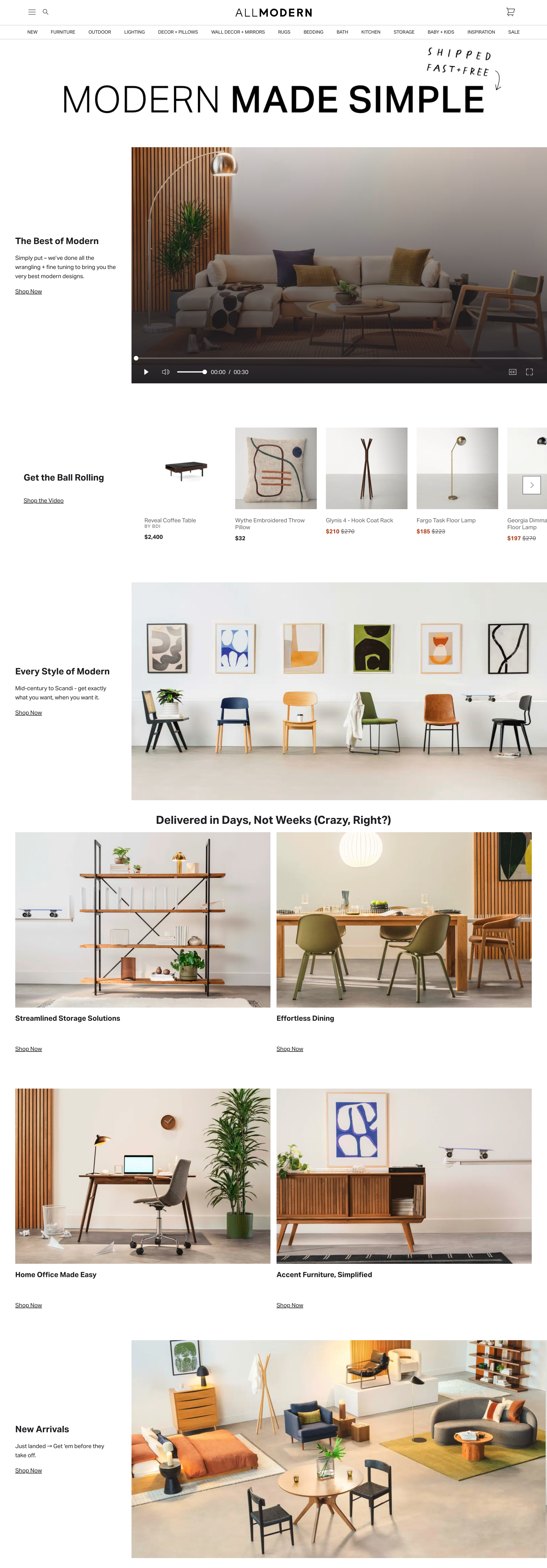 In 2022, AllModern needed to accelerate its strategic shift from a mass-market player to a specialty retailer. The challenge was to communicate this new, elevated positioning to a more design-focused audience in a way that was both memorable and true to the brand's core promise of simplicity.