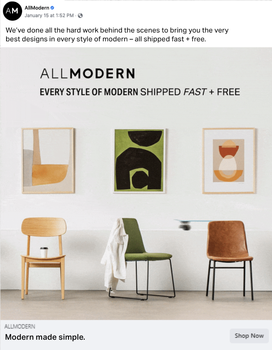 The campaign was a critical success, driving a significant lift in brand recognition and engagement. More importantly, it successfully attracted the target design-focused audience, reinforcing AllModern's new identity as a specialty retailer and paving the way for sustained growth in the upscale market.